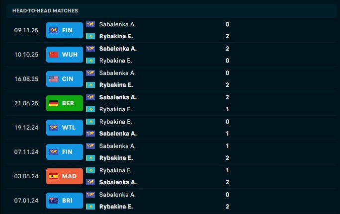 Rybakina, though, looks primed to flip the script. Her serve has been the single most destructive weapon in the tournament, firing double-digit aces in two of her last three matches. Even when her first-serve percentage dipped below 55% against elite opposition, she still found a way through. When she faced Sabalenka indoors at the WTA Finals, she landed two-thirds of her first serves, blasted 13 aces and was never broken, a blueprint she’ll need to follow again.
